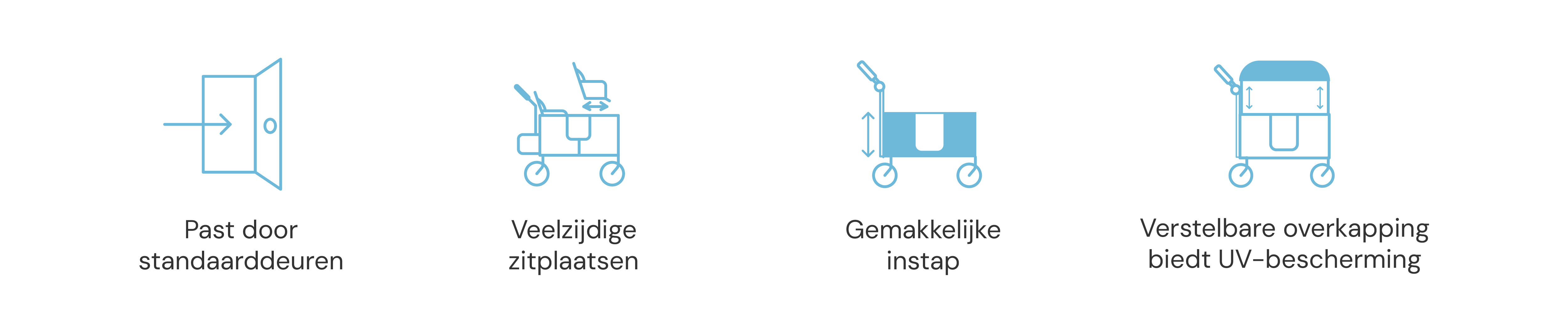 - Zonbescherming: Verwijderbare kap met verstelbare stangen.