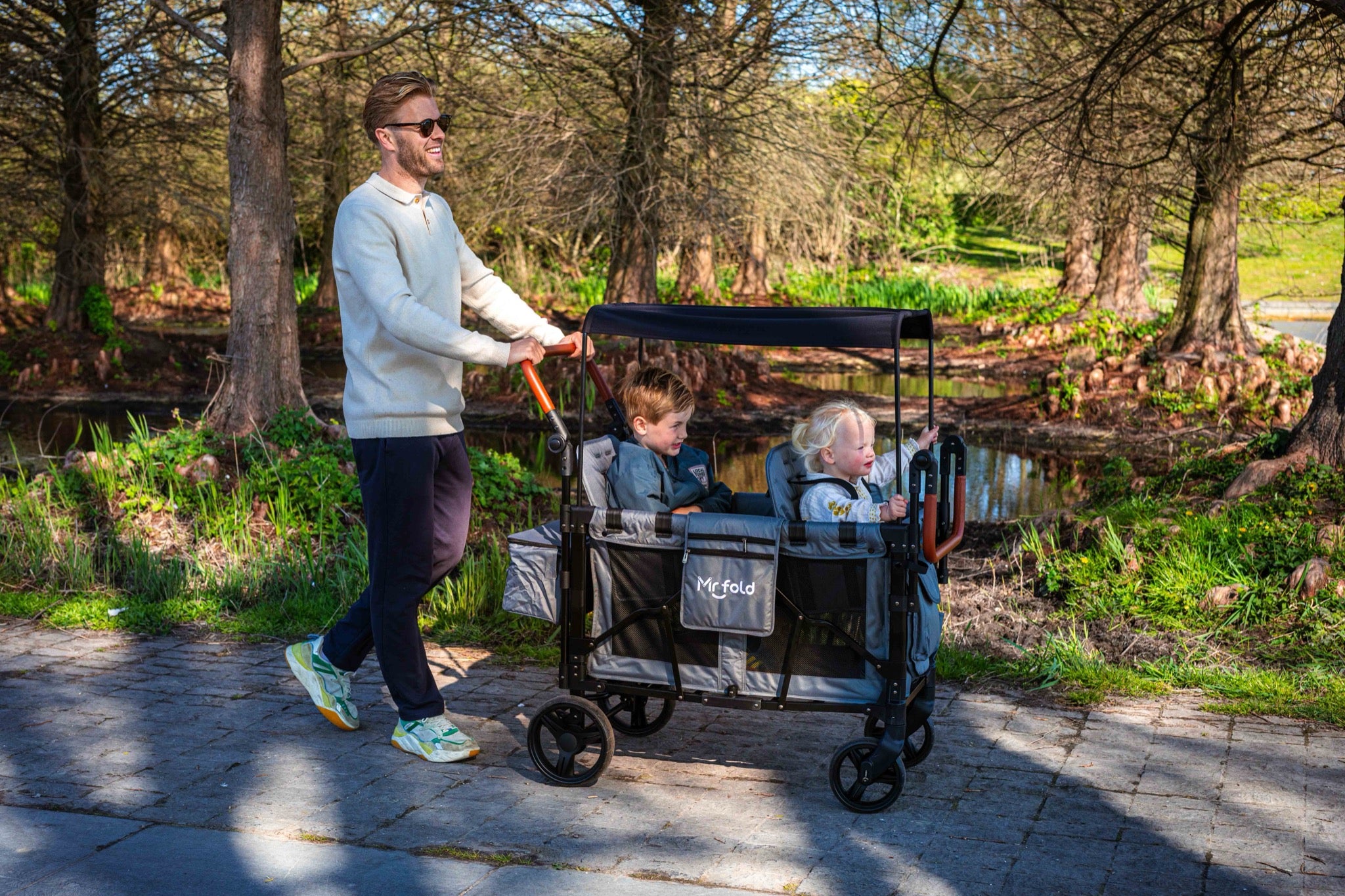 Of je nu met kinderen op pad gaat of zware spullen wilt vervoeren — onze kinderwagens en bolderkarren combineren comfort, veiligheid en gebruiksgemak met een strak, modern design.